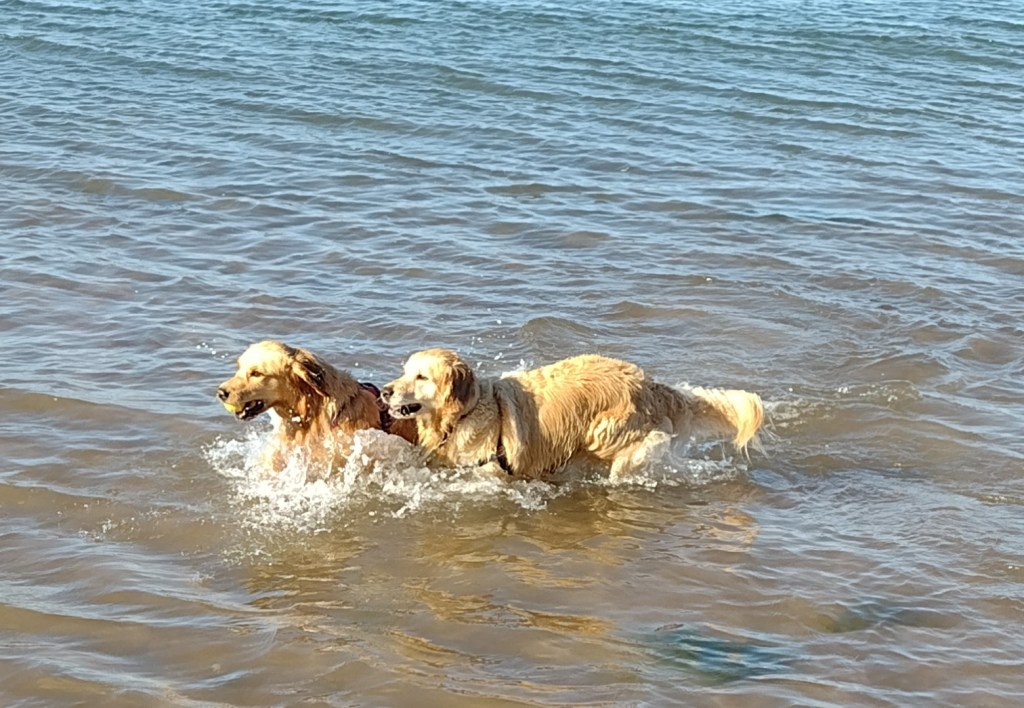 Making sure that the girls are safe in the hot weather (they both have Hugo and Hudson cooling coasts which stay wet for ages) and walking in the early morning.