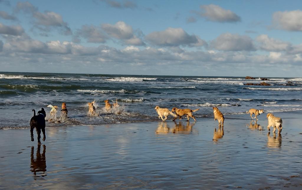 The beach is dog friendly in winter and I was surprised that on a dry sunny Sunday afternoon in November that it was pretty much only dog walkers on the beach – I suspect that families without dogs had gone to nearby Summerleaze beach. We were parked in the car park at the northern end of the beach where there are toilets and a dog friendly cafe. Plenty of room for the dogs to run and a nice sandy beach.